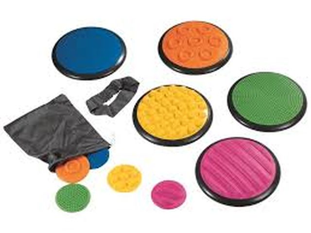 Met dit zintuiglijk tastmateriaal leer je je zintuigen te ontwikkelen, voelen is hierbij heel belangrijk. Er zijn 5 grote en 5 kleine bijpassende schijven. Alle 5 de schijven hebben een andere kleur en structuur.